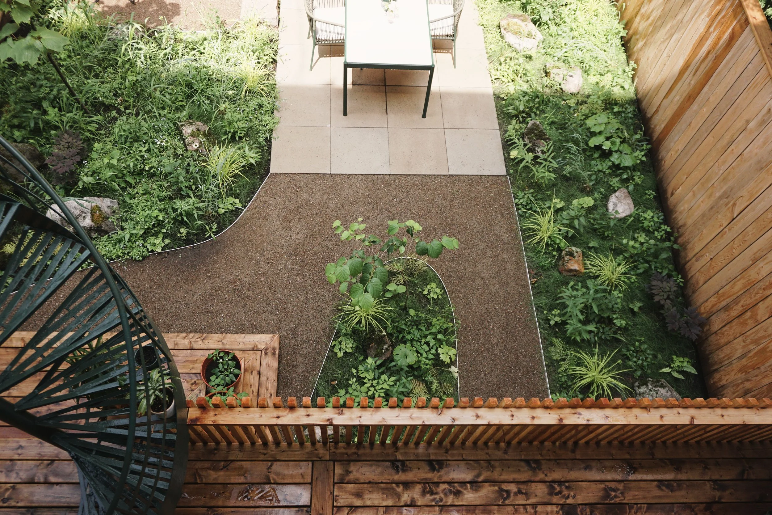 Au départ, cette arrière sombre, composée de gazon synthétique et de haie de cèdres, avait tout pour décourager ses occupant.e.s d’envisager un quelconque potentiel de biodiversité dans ce lieu presque sans vie. Avec beaucoup de vision et d’efforts réunis, la cour de Catherine et Marc-Alexandre accueille aujourd’hui des centaines de plantes indigènes tout en laissant passer de magnifique percées lumineuses.
