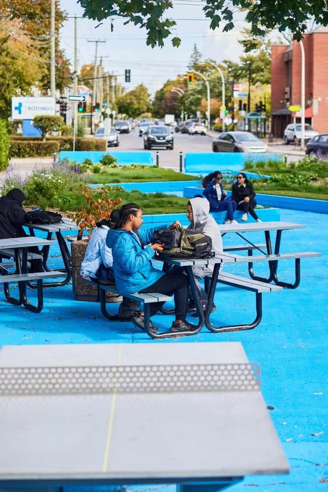 Afin d’atténuer les nuisances dûes à la circulation, un aménagement transitoire de fermeture d’un tronçon de la rue Fleury Est a été mis en place. Conçu par la firme d’aménagement Castor et Pollux,